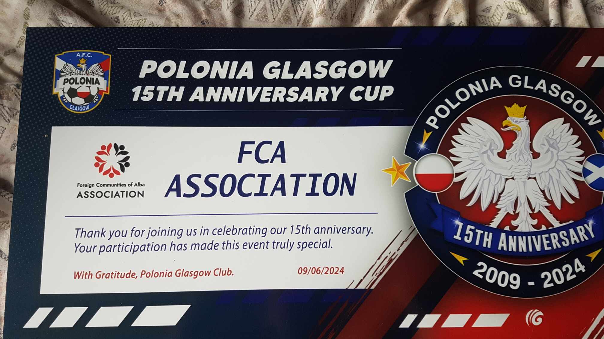 On the 9th of June 2024 FCA Association has participated in the Polonia Glasgow 15th Anniversary Cup. Thank you to the organizers for a fantastic atmosphere. It is yet another example how much we can achieve, if we work together.